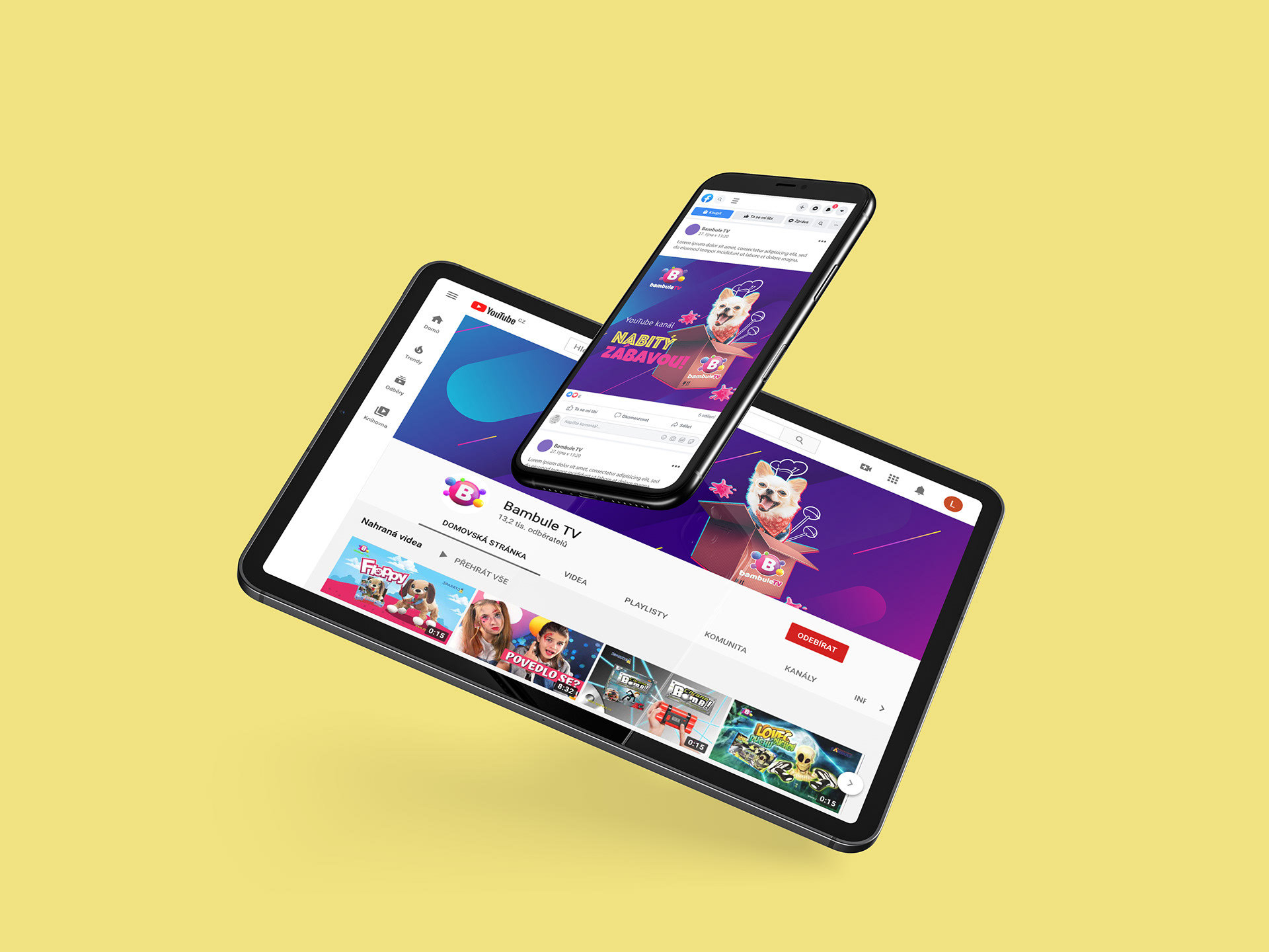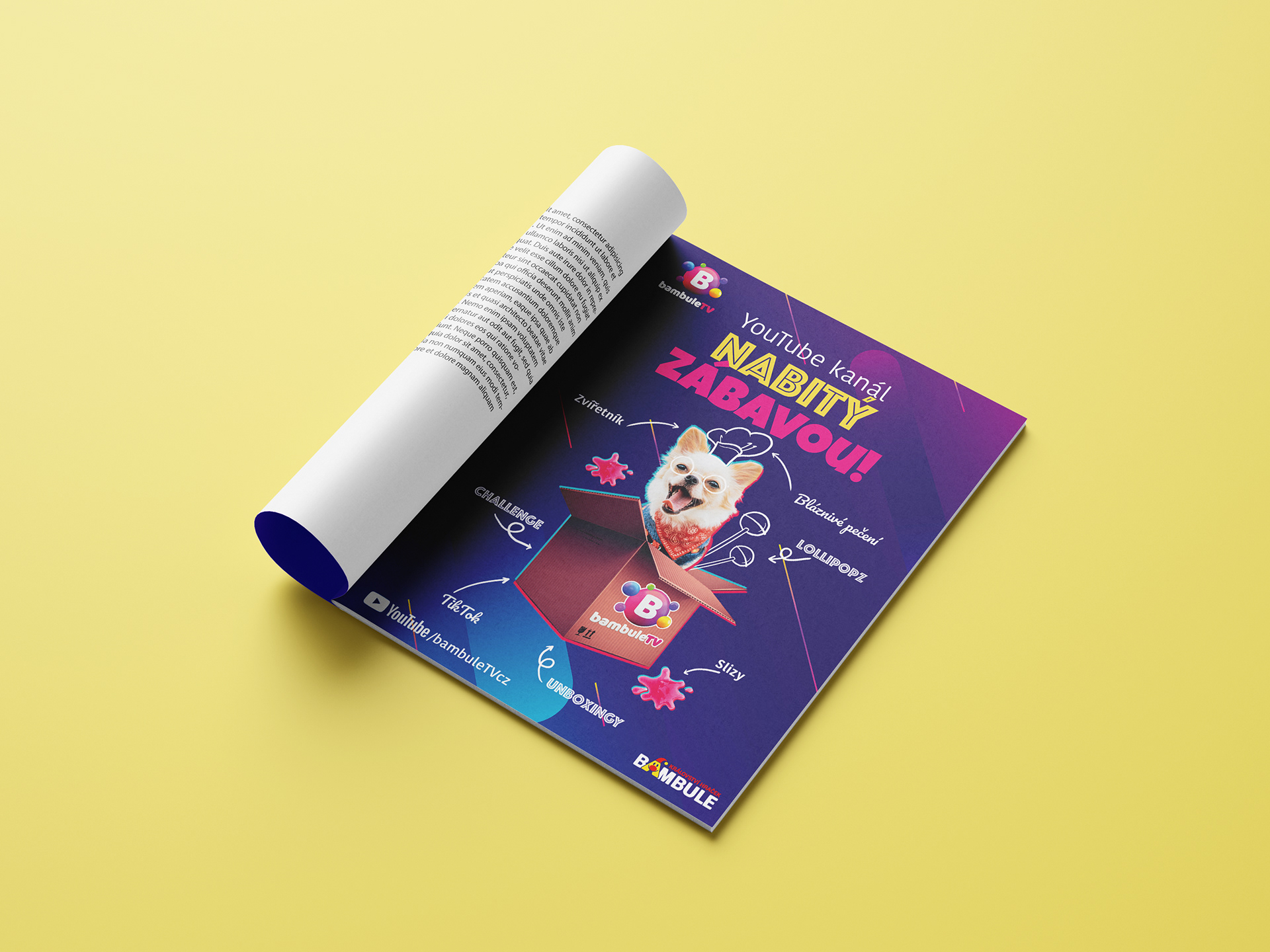 Grafický návrh kampaně pro YouTube kanál Bambule TV. Tvorba koláže pro webové bannery i tiskovou inzerci.