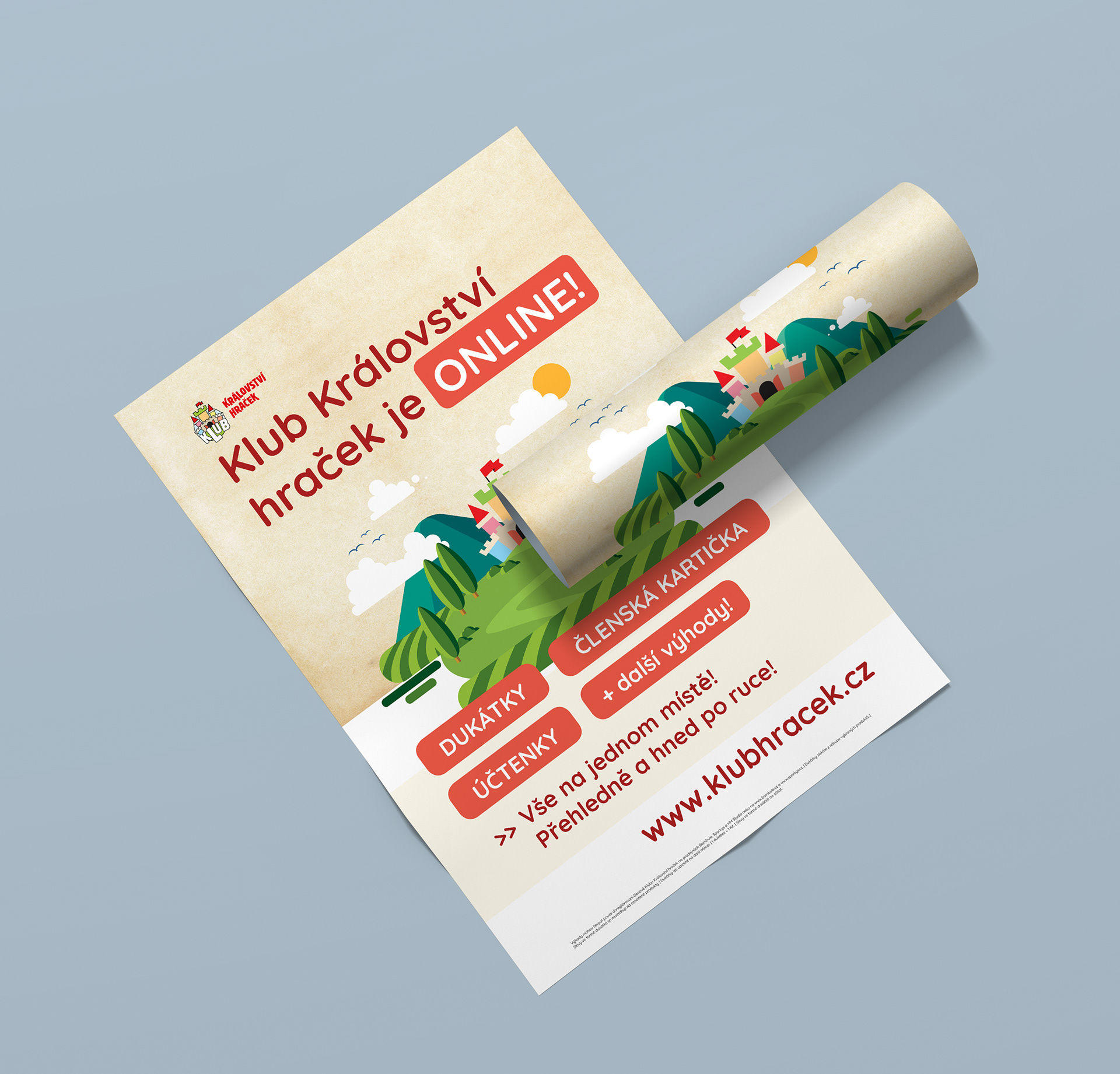 Redesign Klubu Království hraček. V rámci redesignu vznikl grafický návrh webových stránek s kompletním UX a UI. Byl vytvořen manuál jednotného vizuálního stylu, množství bannerů pro sociální sítě, plakáty, letáky a další tiskové materiály.